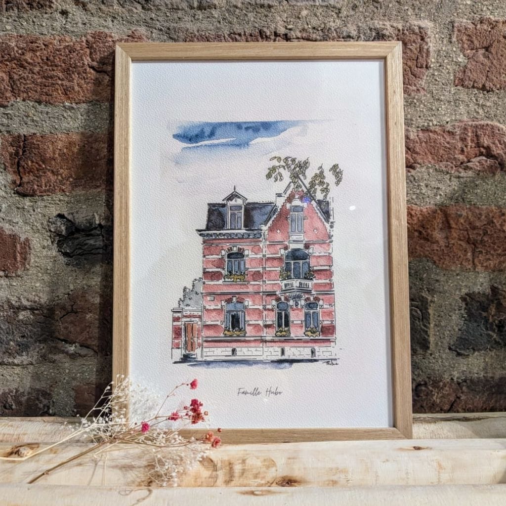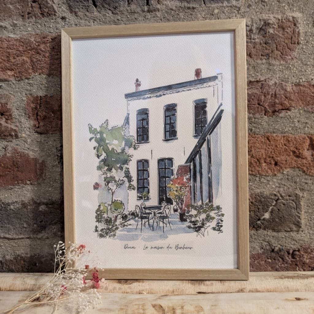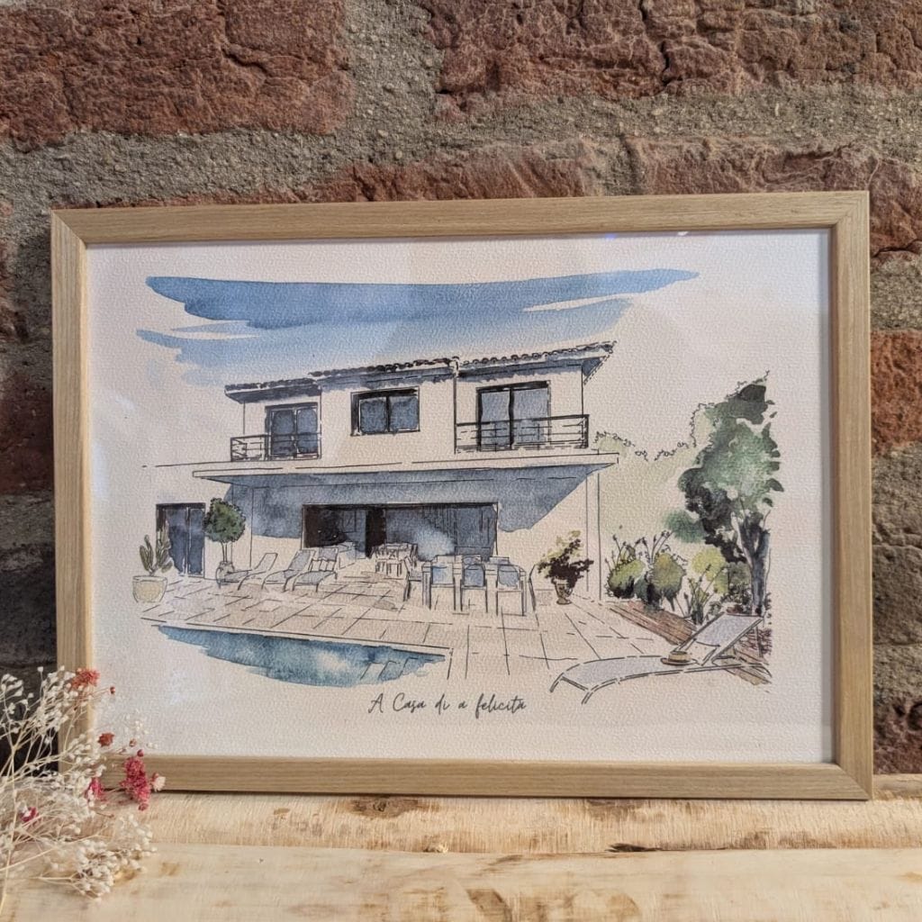 Cette illustration est parfaite comme cadeau original pour un anniversaire, une crémaillère, ou pour célébrer une occasion spéciale. Elle peut également représenter la devanture d’un commerce, d’un gîte ou d’un café, et apporter une touche artistique à vos supports de communication.